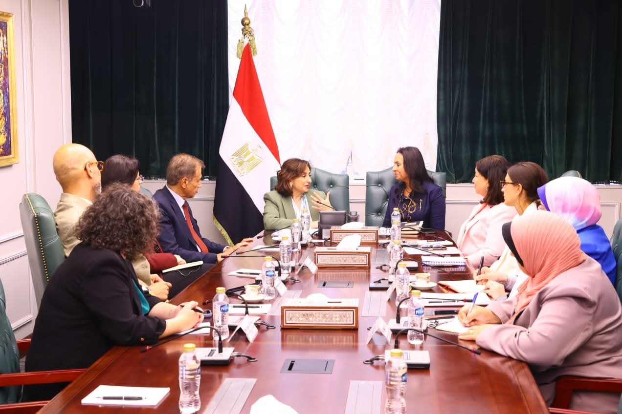 Also present at the meeting were key ministry officials: Engineer Margret Sarofim, Deputy Minister of Social Solidarity; Dina El-Sirfy, Assistant Minister for International Cooperation; and Amira Taj El-Din, Director of International Cooperation and Agreements.