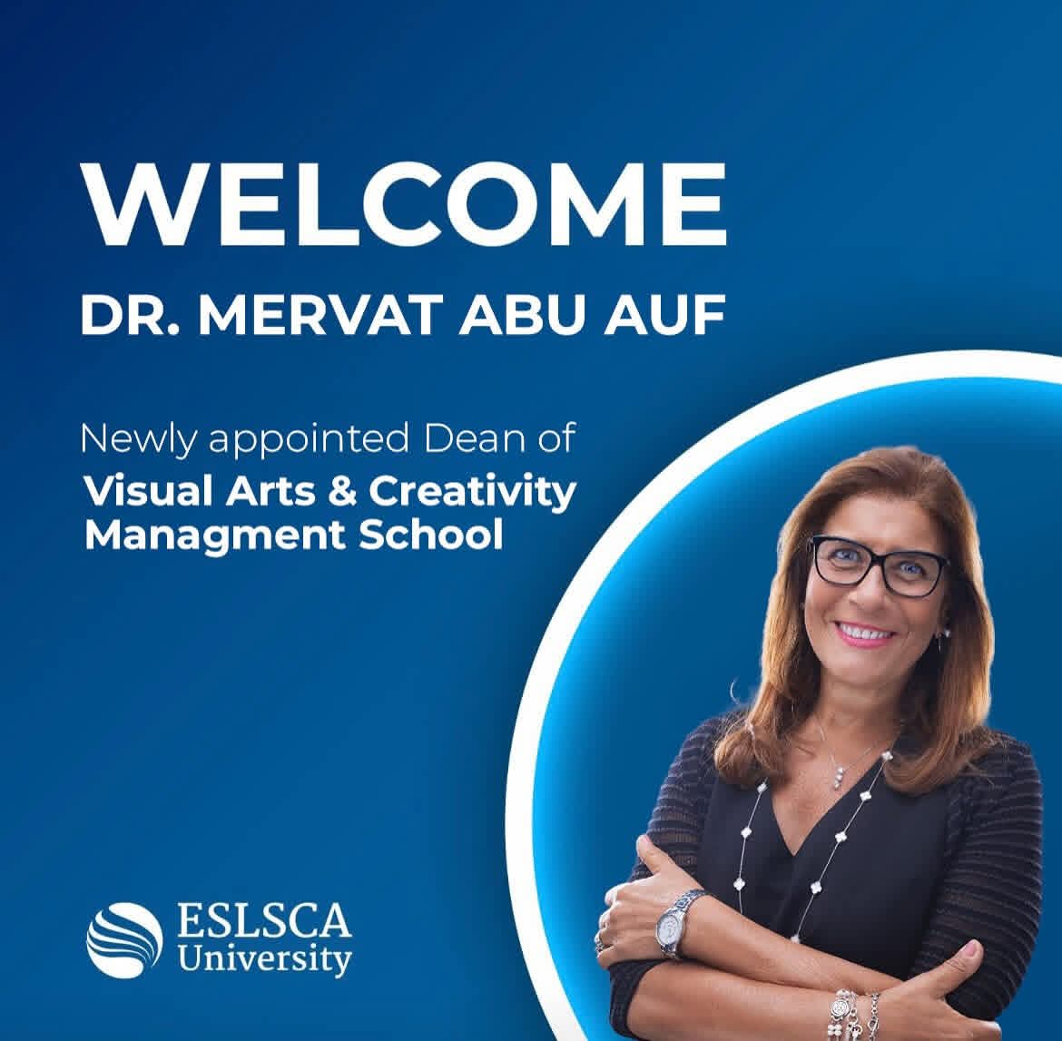 ESLSCA University has announced the appointment of Dr. Mervat Abu Auf as the new Dean of the School of Visual Arts and Creativity Management.