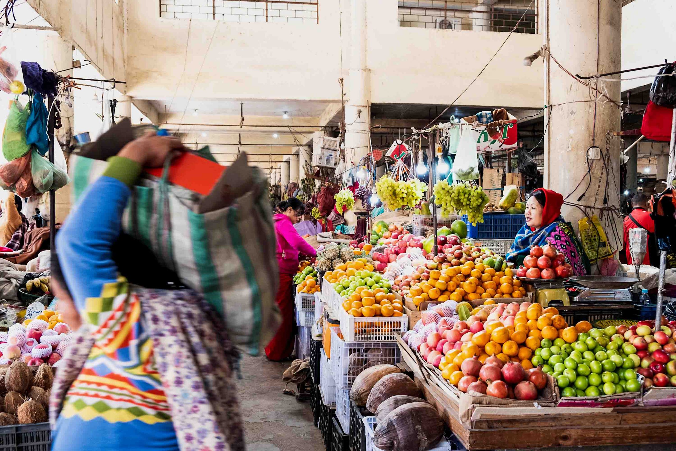 During the early morning rush, the scent of eromba, a local dish of mashed potato, bamboo shoots and dried fish chutney, sizzles through the air. In one corner, a group of matriarchs are huddled around discussing problems with delayed deliveries and subpar produce.