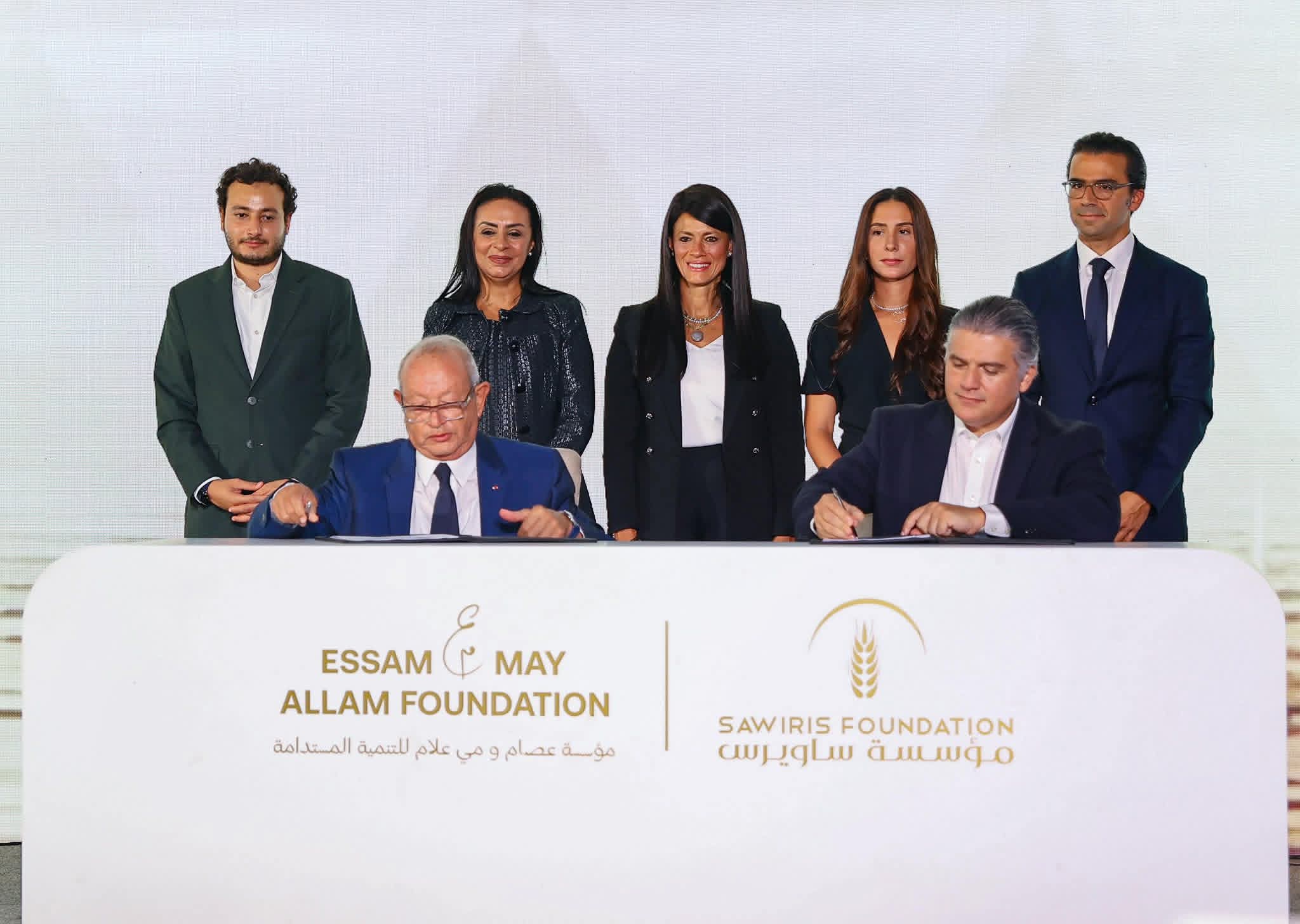 The agreement was signed by Eng. Naguib Sawiris, Founder and Vice Chairman of the Board of Trustees at Sawiris Foundation for Social Development, and Eng. Hassan Allam, Founder and Chairman of the Board of Trustees at Essam & May Aalam Foundation.