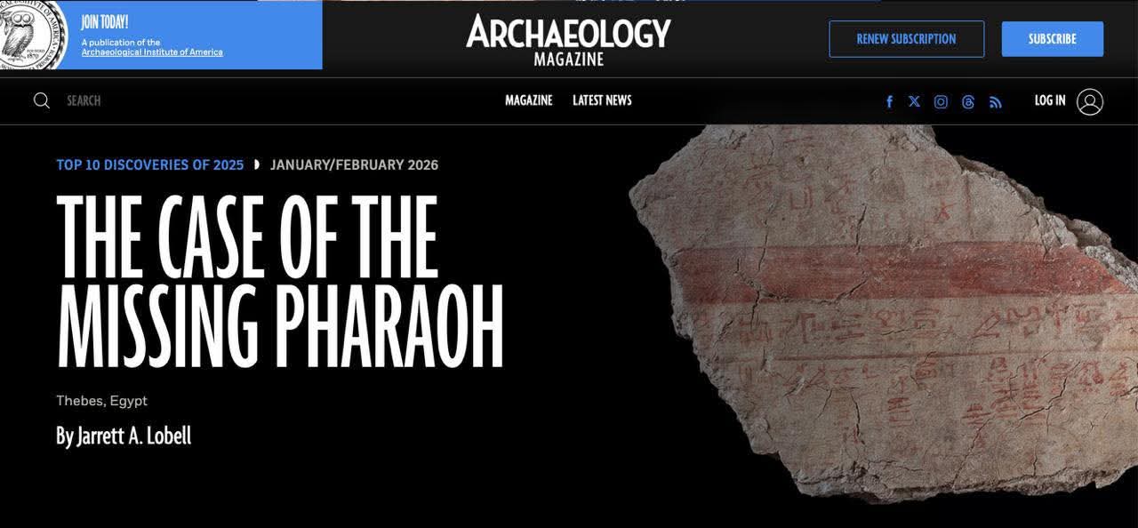The tomb, whose discovery was officially announced by Egypt’s Ministry of Tourism and Antiquities in February 2025, is of exceptional historical significance. It represents the first royal tomb from Egypt’s 18th Dynasty to be discovered since the unearthing of King Tutankhamun’s tomb in 1922, marking a milestone more than a century in the making. Reflecting its importance, one of the newly discovered inscriptions from inside the tomb was featured on the cover of Archaeology Magazine’s January–February 2026 issue.